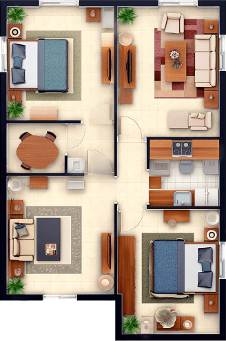 The living room is the heart of the home—a space designed for comfort, relaxation, and gathering. It typically features seating like sofas or armchairs, a coffee table, and often a TV or entertainment unit.